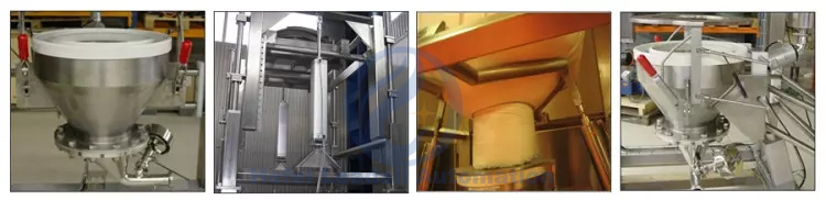 unloading machine can be widely used in magnetic materials industry, food processing industry, plastic processing industry, lithium power industry, coatings industry, chemical industry and pharmaceutical industry etc. Clean and safe unloading of big bagged materials.